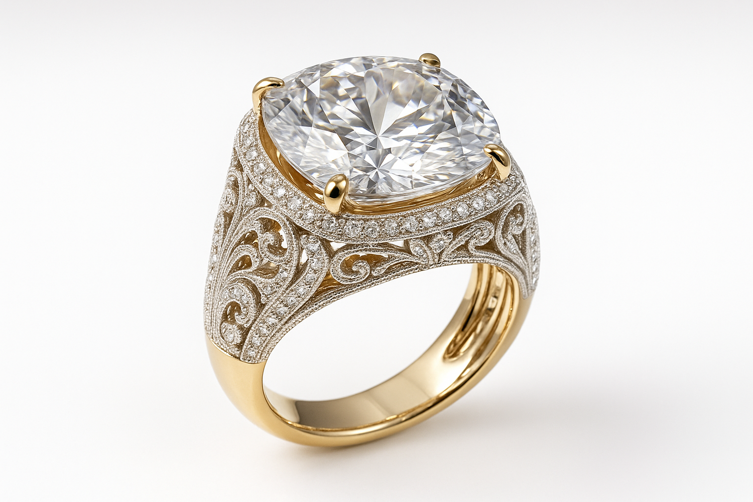 Vintage Yellow Gold Weaved Filament Ring with Diamonds