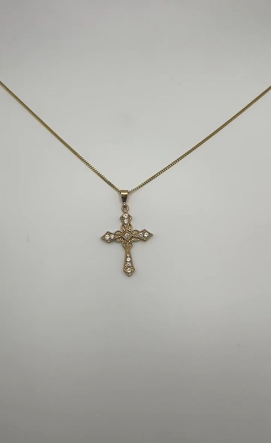 Fancy Cross 14k Yellow Gold with Natural Diamonds