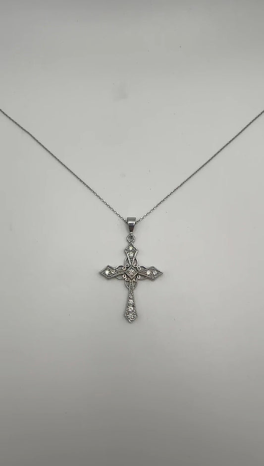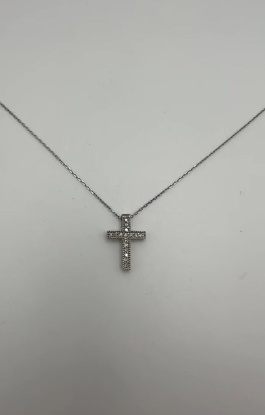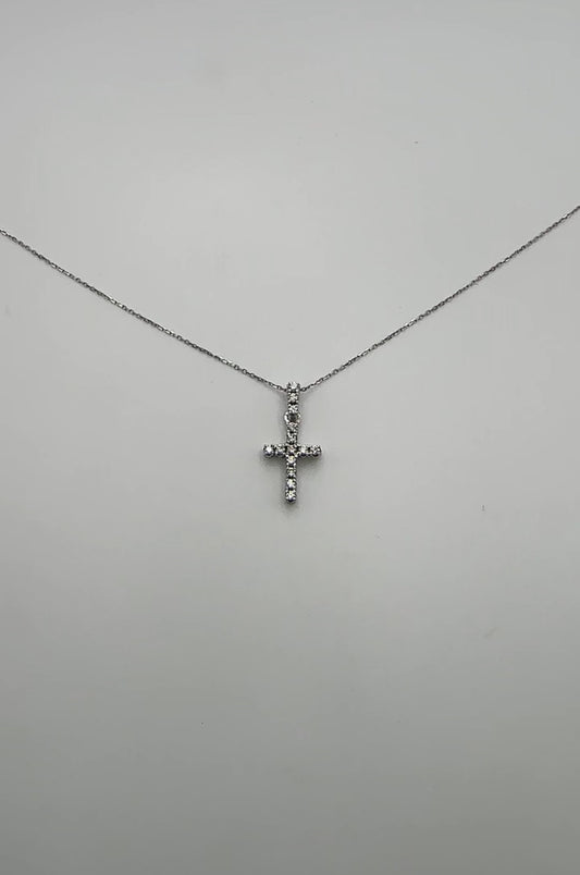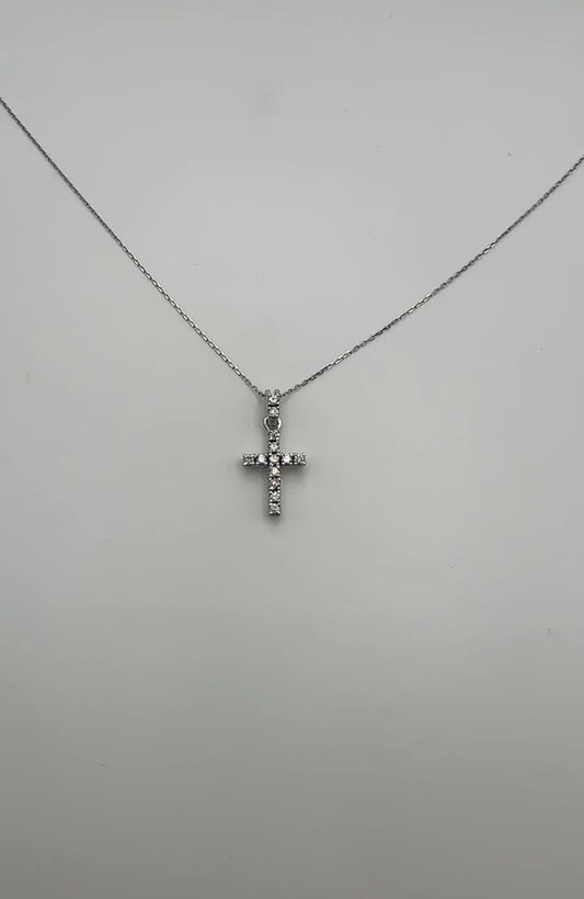 Mini Cross Pendant 14k White Gold - Natural Diamonds