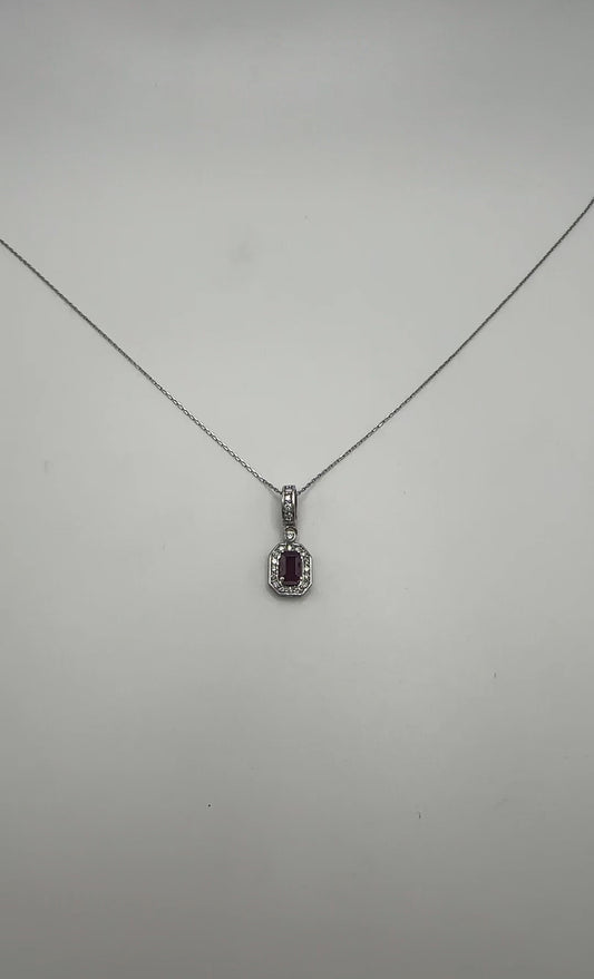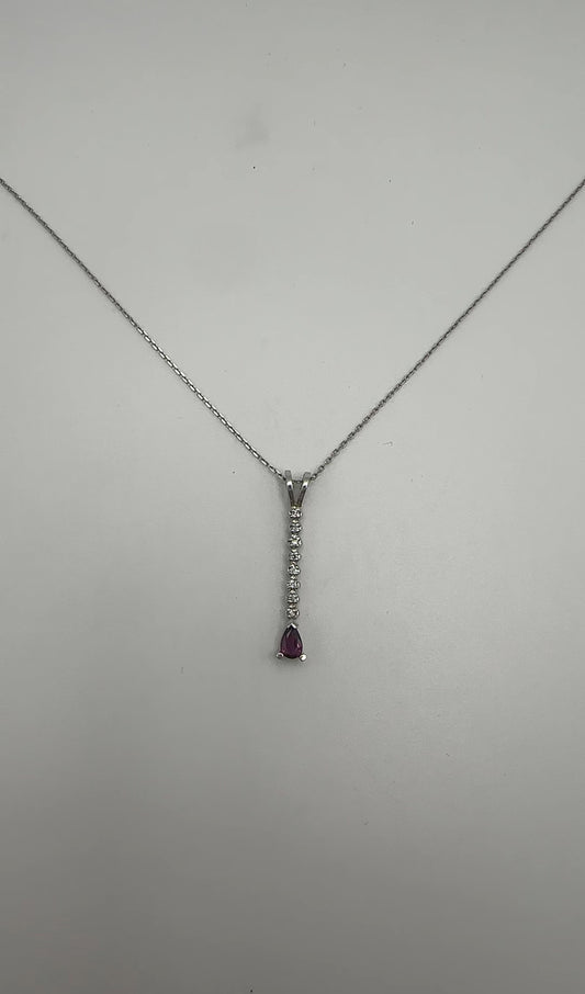 Dropdown Diamond Pendant with Pear Ruby Accent 14k White Gold