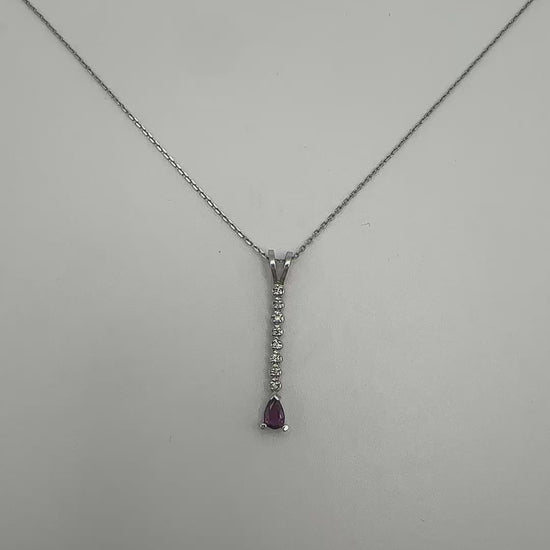 Dropdown Diamond Pendant with Pear Ruby Accent 14k White Gold