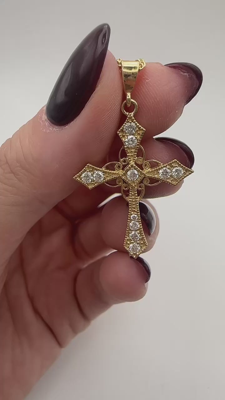 Fancy Cross 14k Yellow Gold with Natural Diamonds