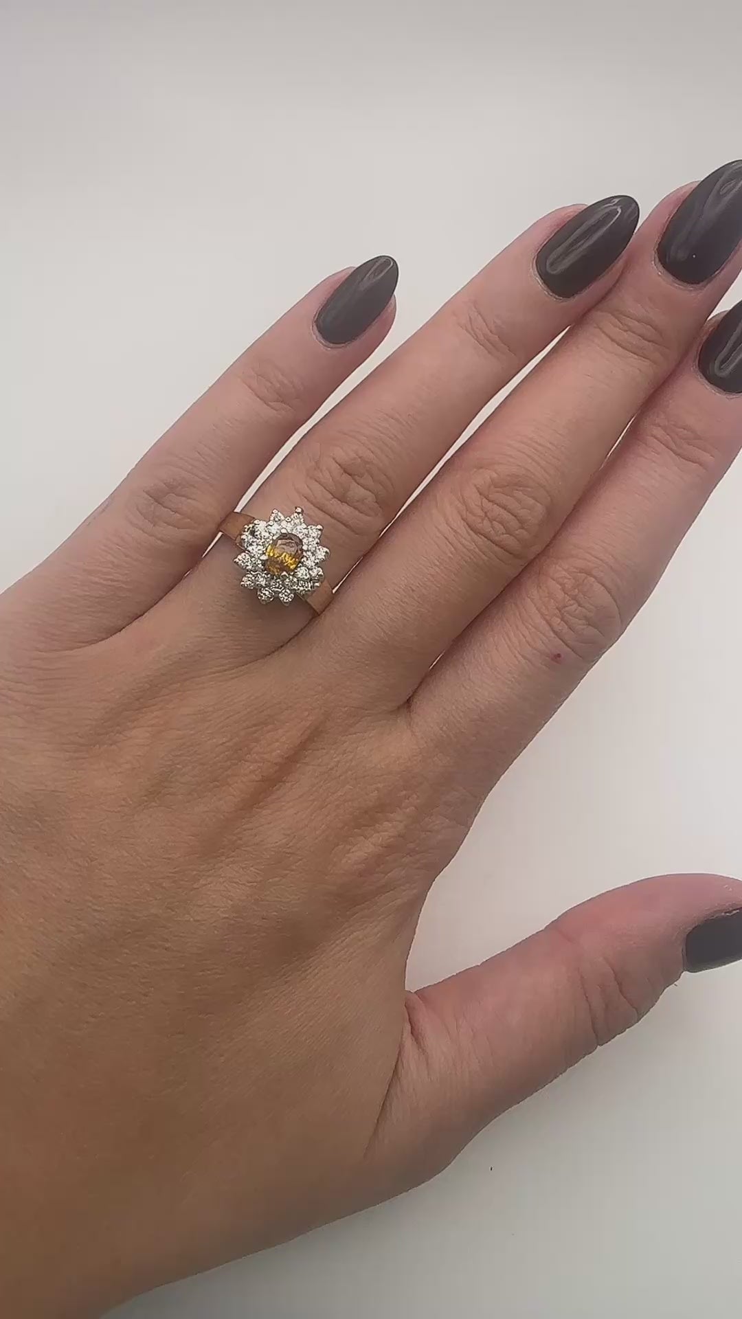 14k Yellow Gold | 0.948 CTW (Carat Total Weight) | 24 Natural Diamonds Total | 1 Yellow Diamond Center Stone | 15.88mm Length | 15.11mm Width | 12.60mm Height