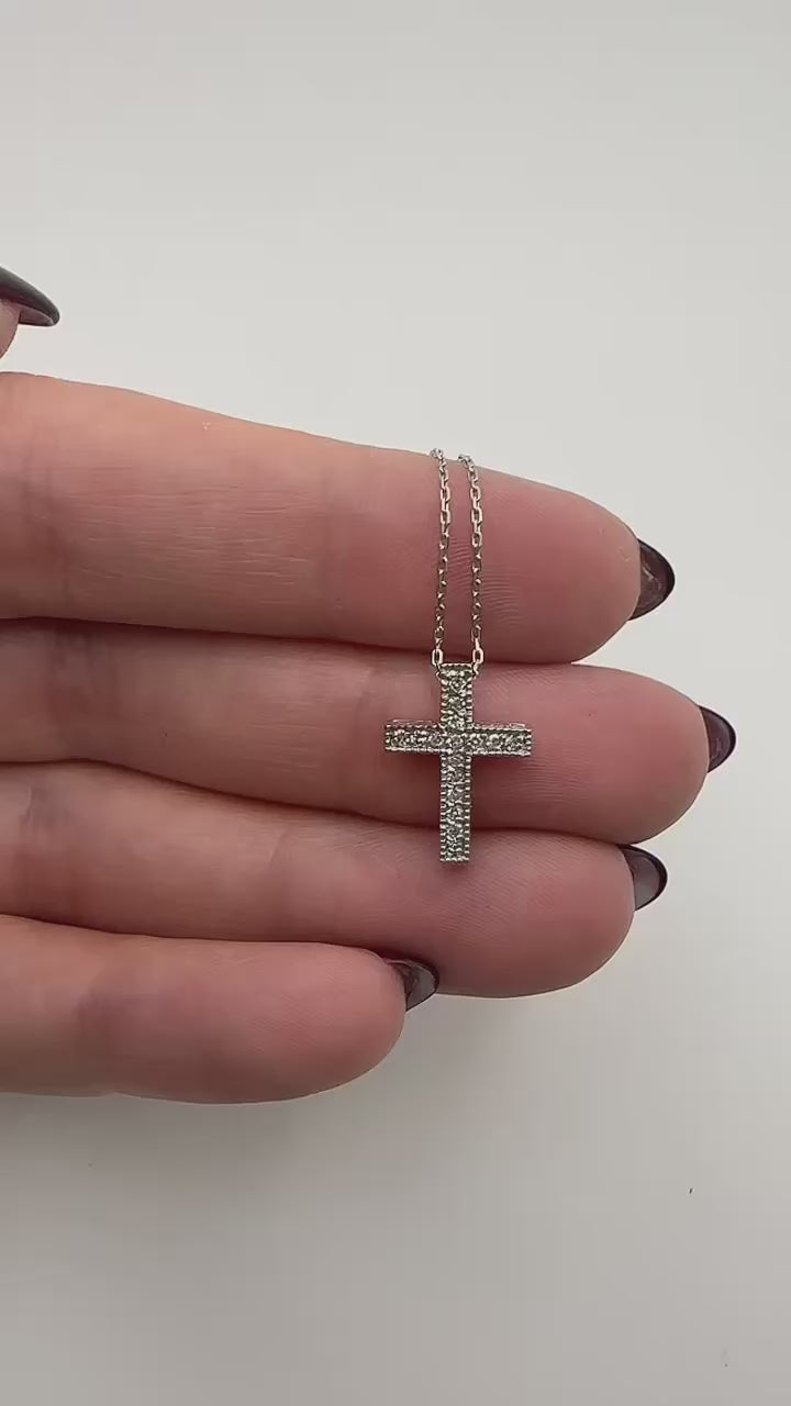 Mini Cross Pendant 14k White Gold - Natural Diamonds