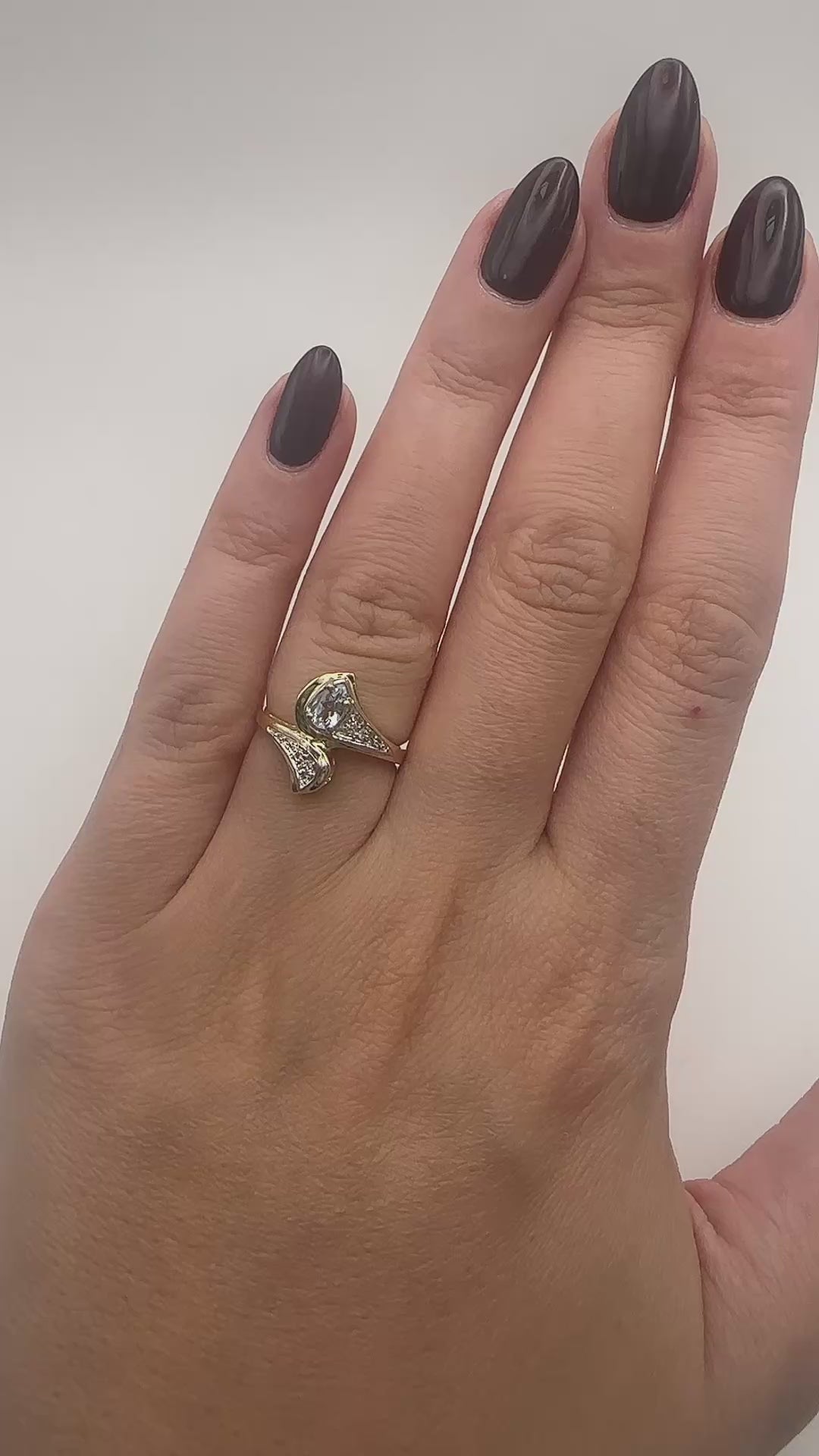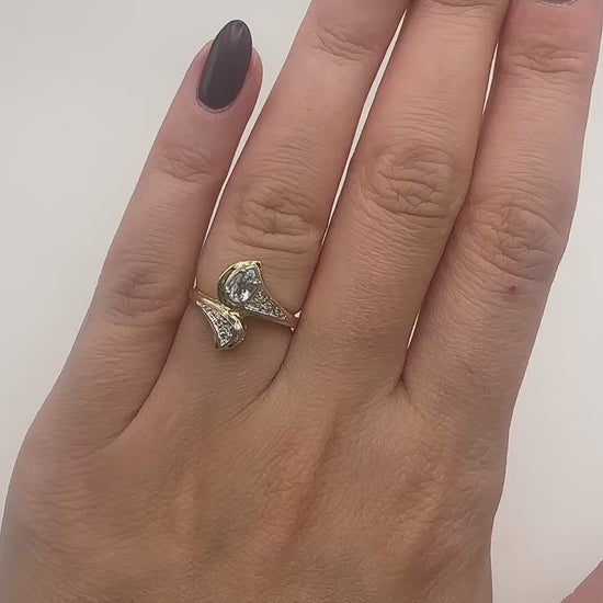 10k Yellow Gold | 0.056 CTW (Carat Total Weight) | 4 Natural Diamonds Total | 1 Pear Aquamarine Center Stone Ring