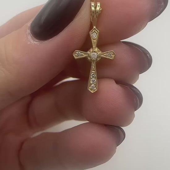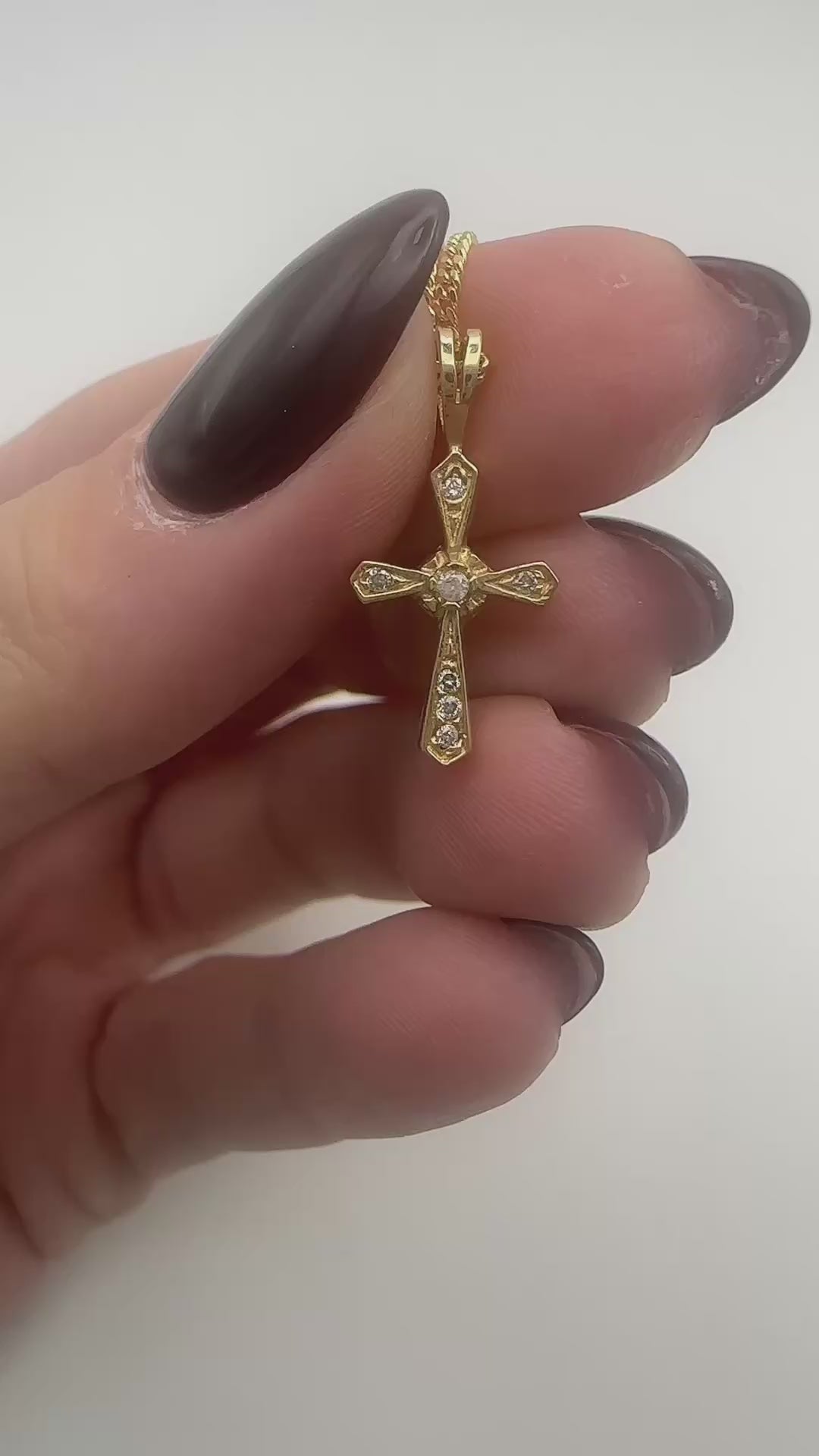 14k Yellow Gold | 0.061 CTW (Carat Total Weight) | 7 Natural Diamonds Total | 20.95mm Length (including bail) | 10.32mm Width